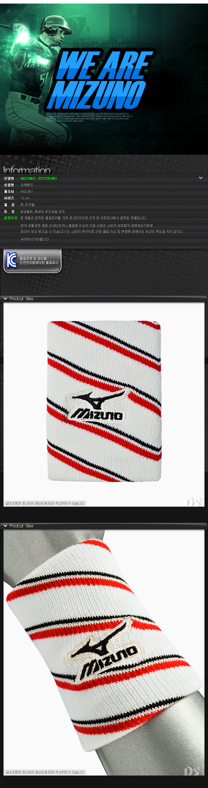 제품명 : MIZUNO손목밴드91401[흰]
