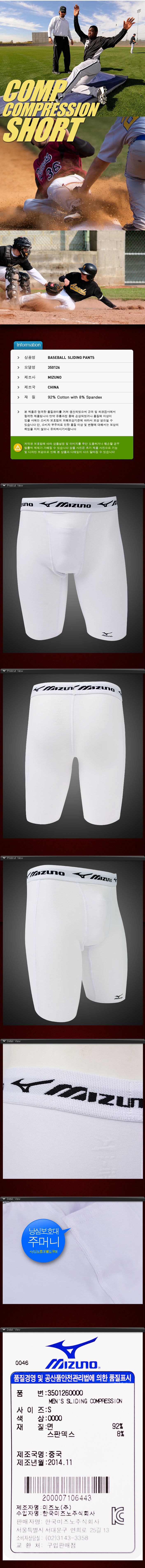 제품명 : MIZUNO슬라이딩팬츠350126[흰]