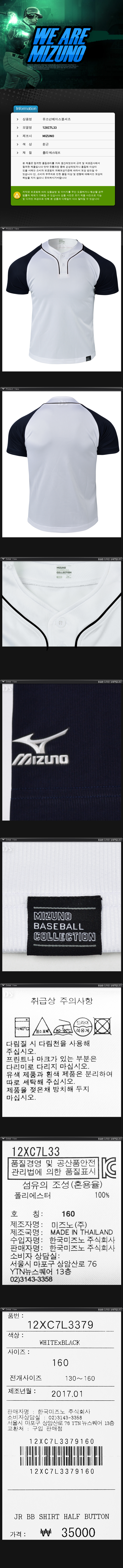 제품명 : MIZUNO유소년베이스볼셔츠3379[흰검]