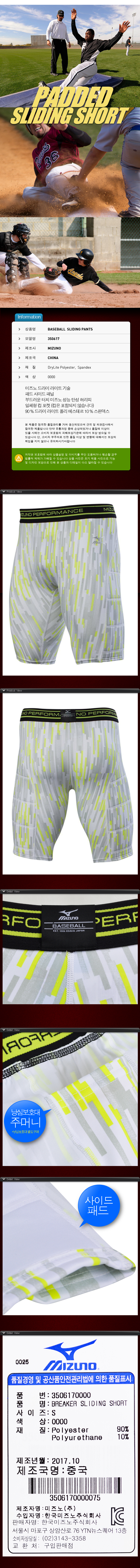 제품명 : MIZUNO슬라이딩팬츠350617[흰]