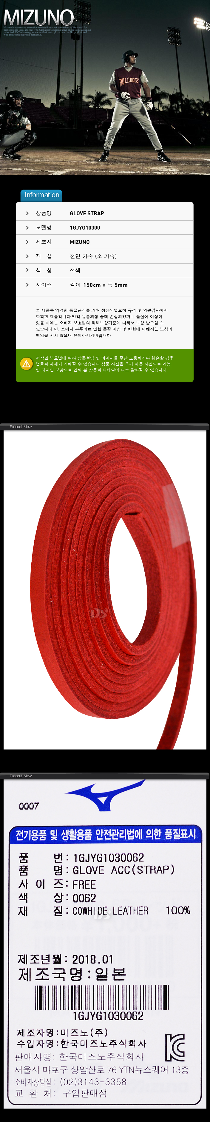 제품명 : MIZUNO글러브끈1030062[적]