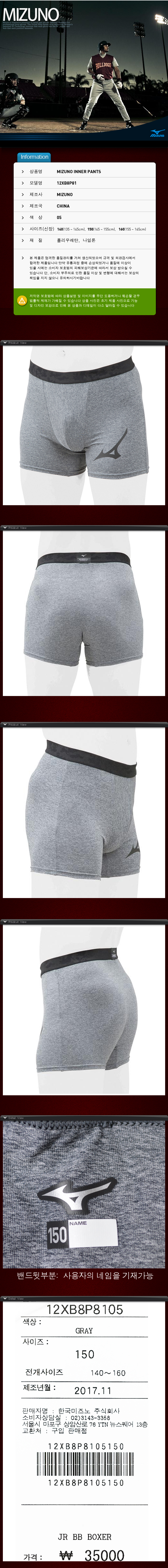 제품명 : MIZUNO유소년이너팬츠12XB8P8105[회]