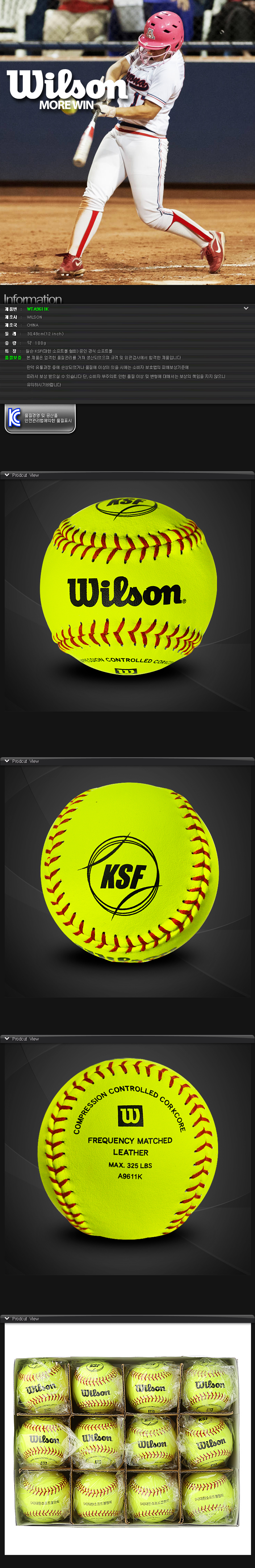 제품명 : WILSON소프트볼경식구WTA9611K[노]