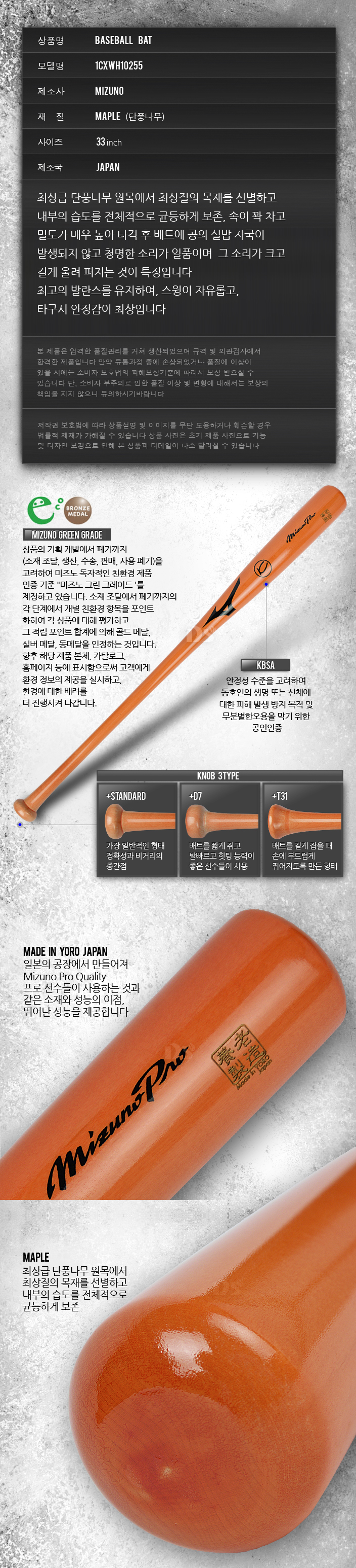 제품명 : MIZUNO프로메이플배트K10255D7[오]