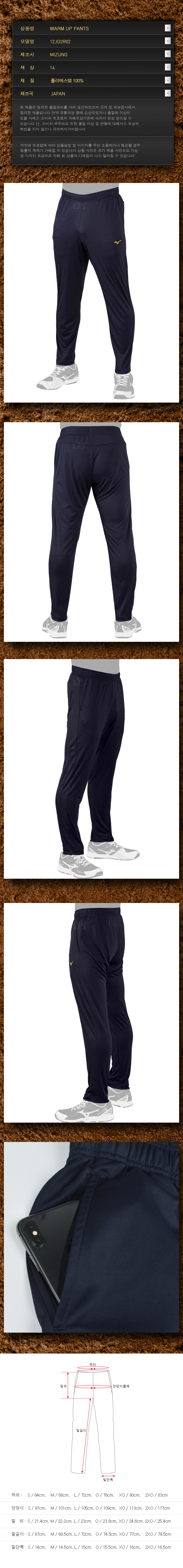 제품명 : MIZUNO프로웜업팬츠0214[곤]