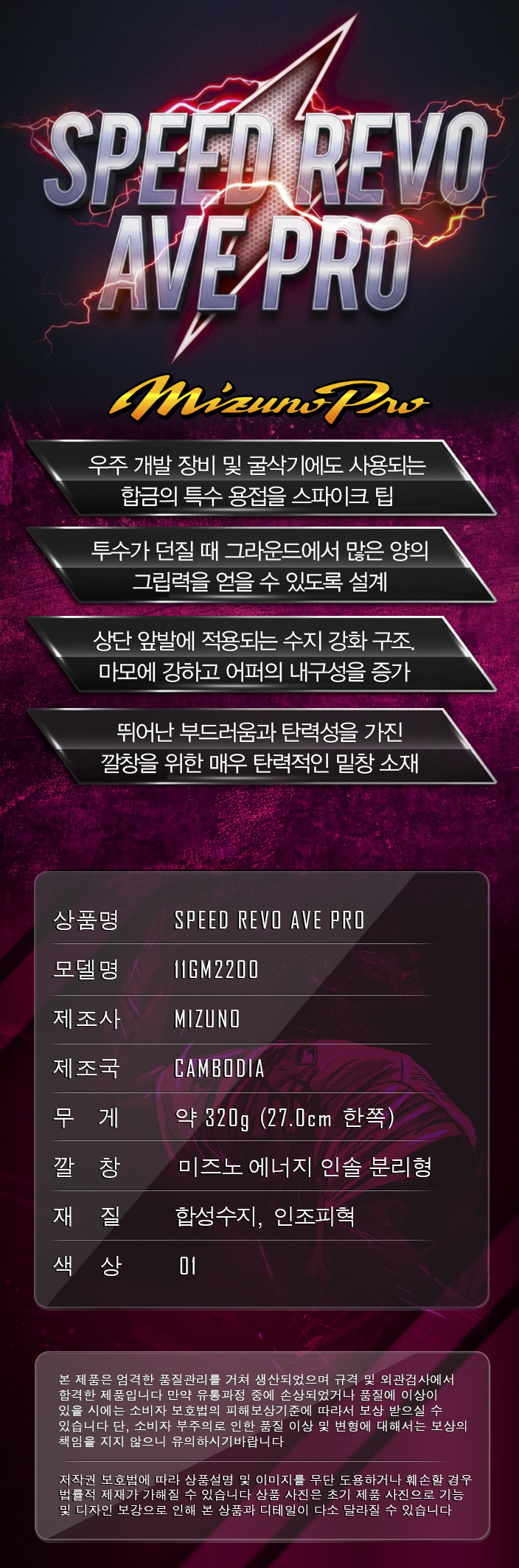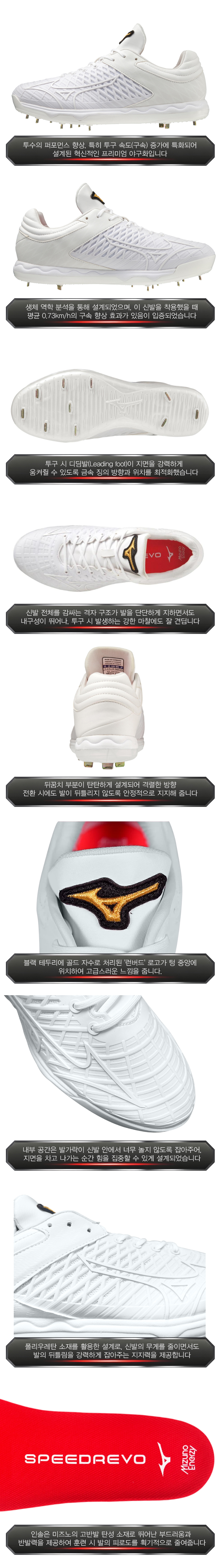 제품명 : MIZUNO프로일체형징야구화220001[흰]