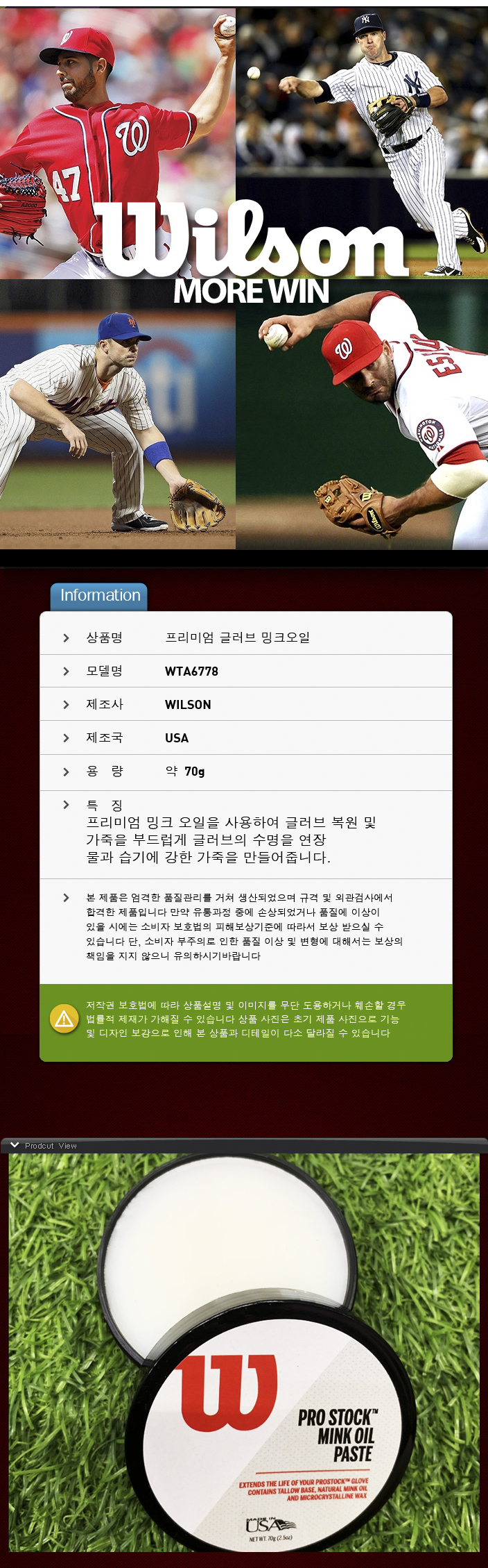 제품명 : WILSON글러브밍크오일WTA6778PD[무]