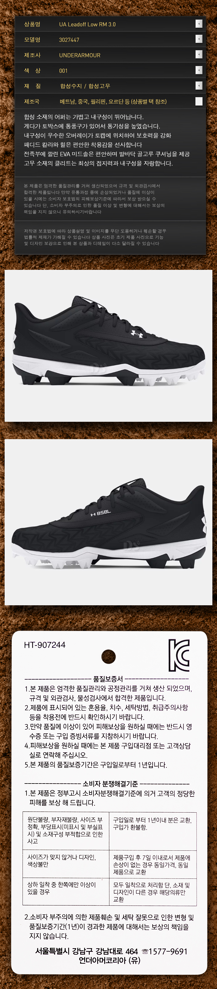 홈 야구야구화UNDERARMOUR