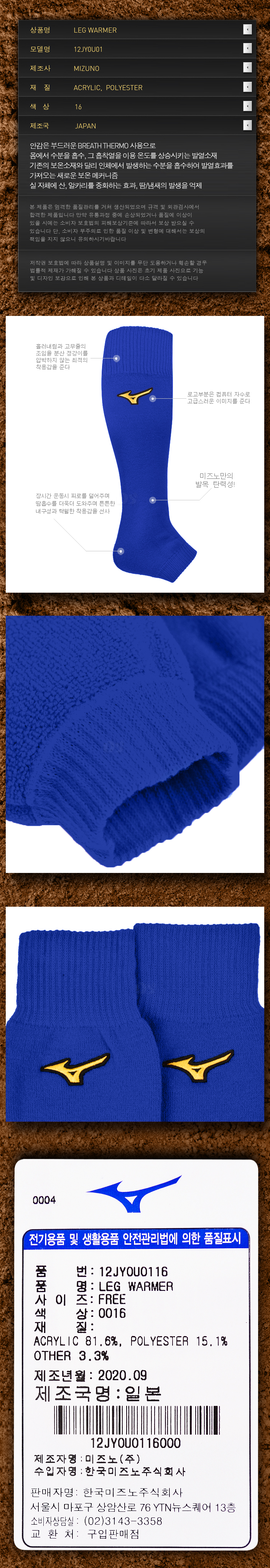 제품명 : MIZUNO프로렉워머0U011616[청]