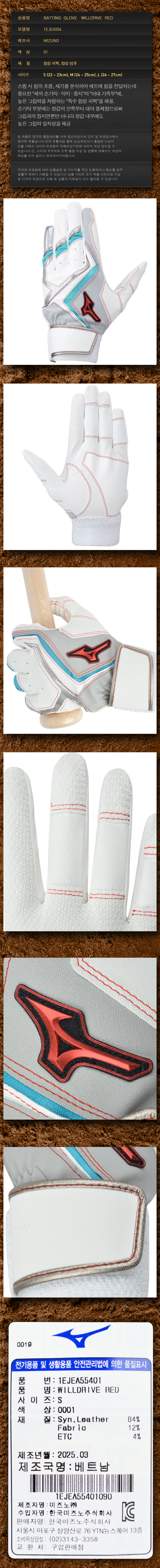 제품명 : MIZUNO윌드라이브배팅장갑55401[흰회]