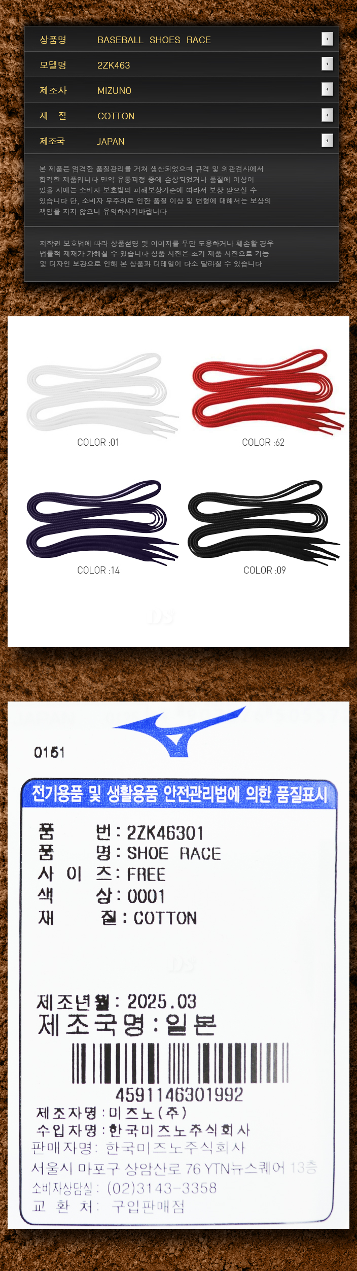 제품명 : MIZUNO야구화끈46301[흰]