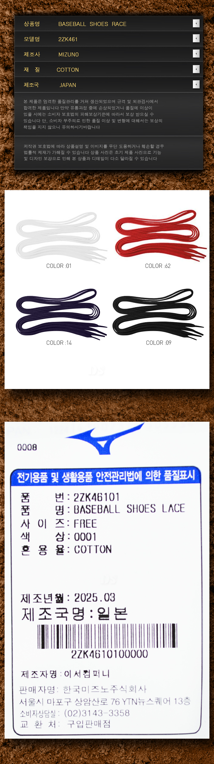 제품명 : MIZUNO야구화끈46101[흰]