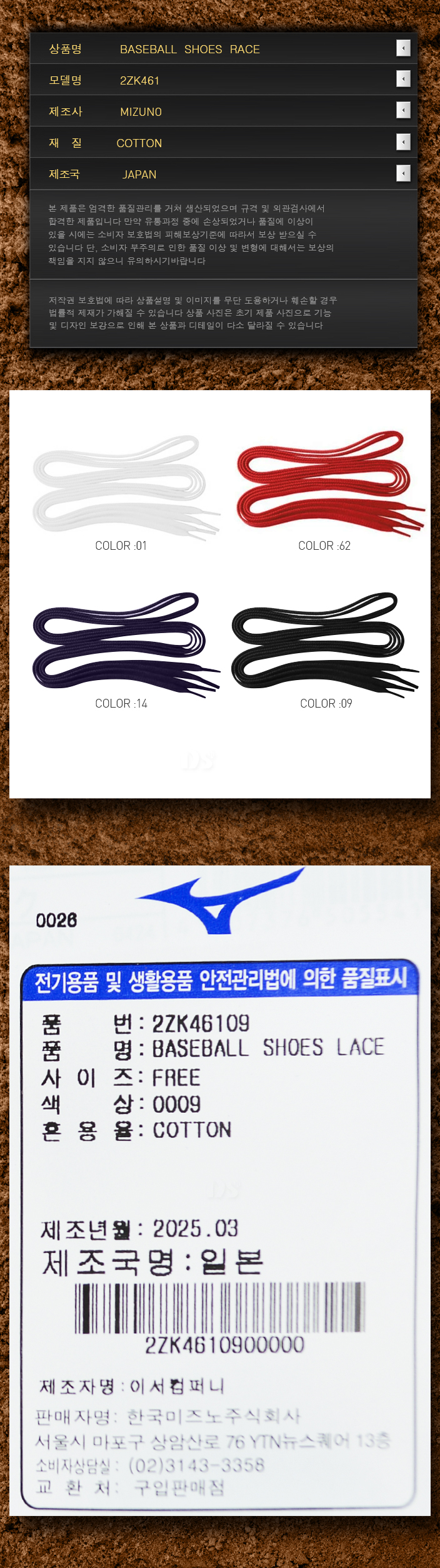 제품명 : MIZUNO야구화끈46109[검]