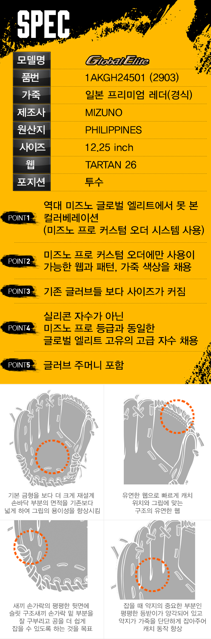 제품명 : MIZUNO(DbyG)GE투수글러브2450101[곤실_우투]