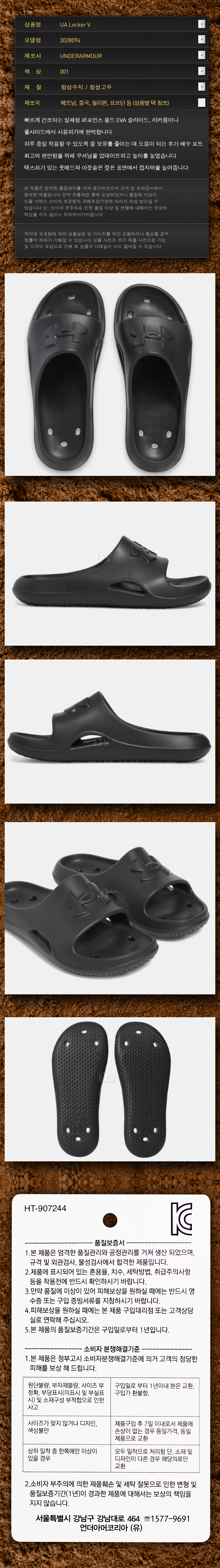 제품명 : UNDERARMOUR슬리퍼3028094001[검]