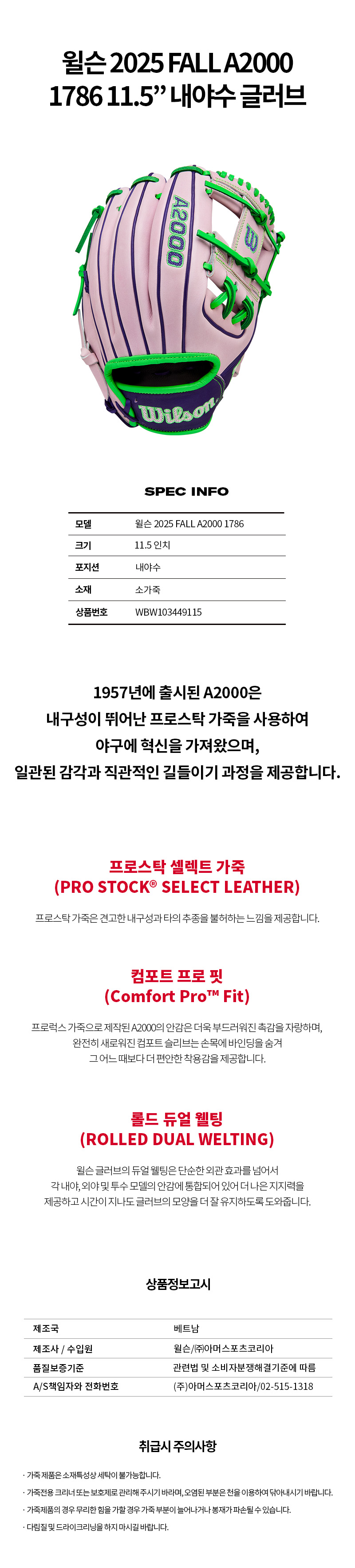제품명 : WILSONA2000내야수글러브WBW103449115[핑그_우투]
