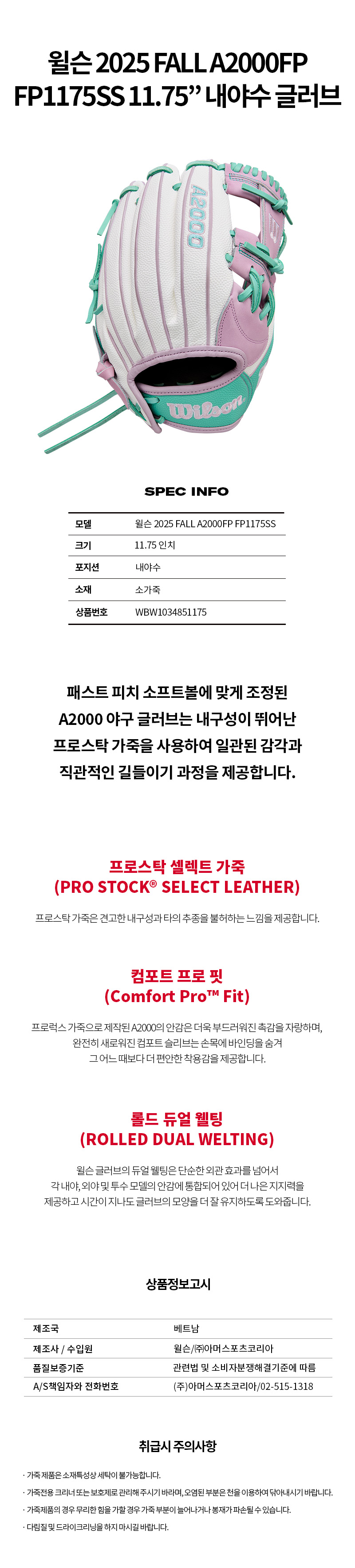 제품명 : WILSONA2000내야수글러브WBW1034851175[핑그_우투]