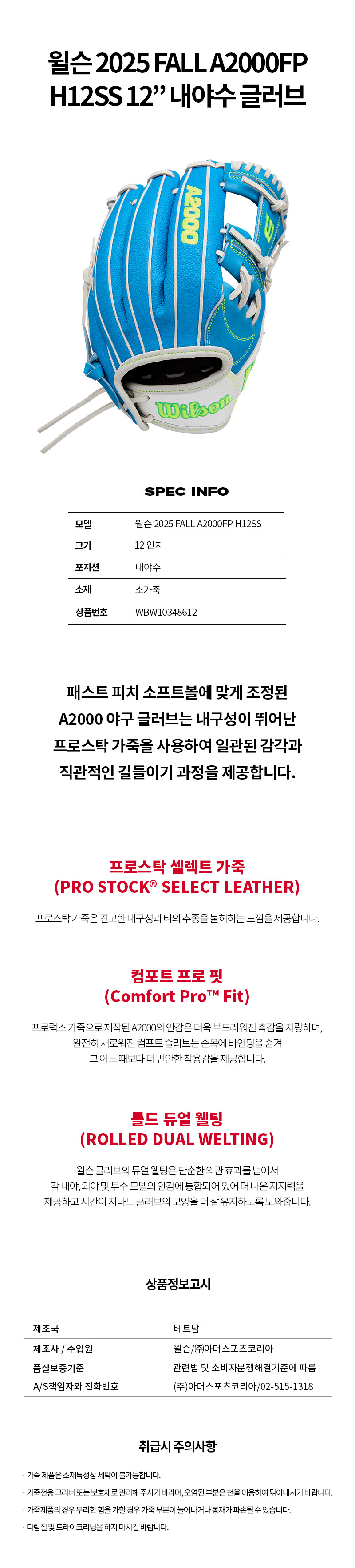 제품명 : WILSONA2000내야수글러브WBW10348612[청흰_우투]
