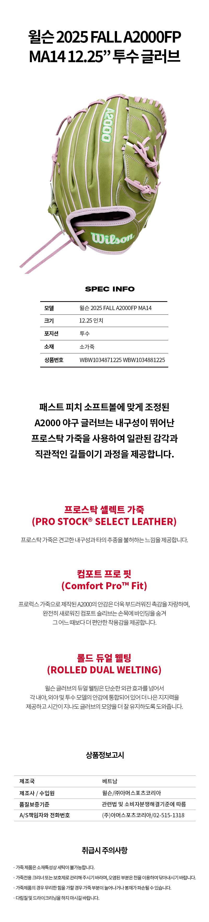 제품명 : WILSONA2000투수글러브WBW1034871225[그핑_우투]