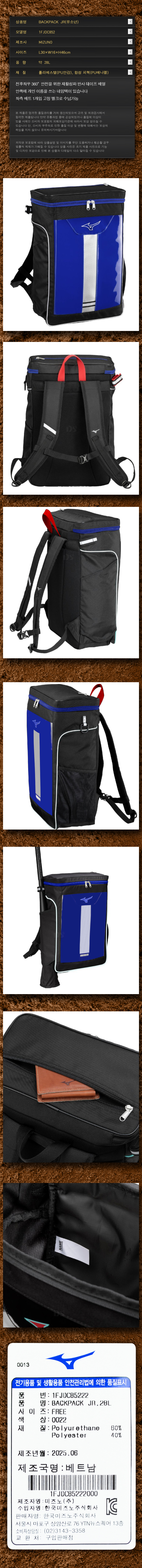제품명 : MIZUNO유소년글로벌엘리트백팩85222[청]