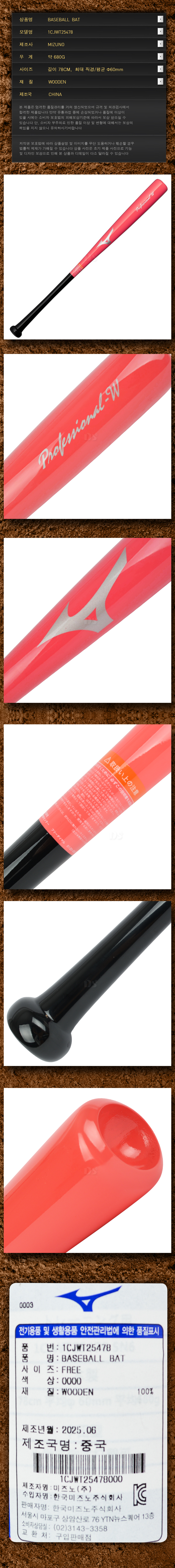 제품명 : MIZUNO연식나무트레이닝배트25478[검회]