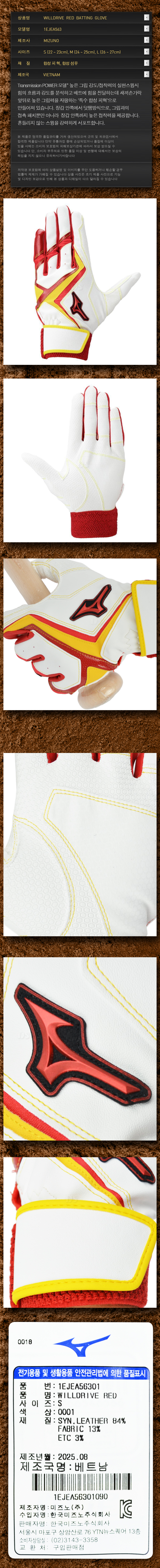 제품명 : MIZUNO윌드라이브배팅장갑56301[흰적]