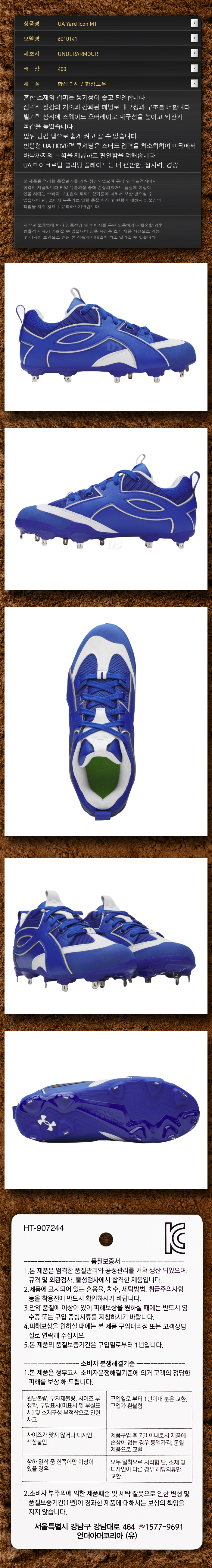 제품명 : UNDERARMOUR일체형징야구화6010141400[청]