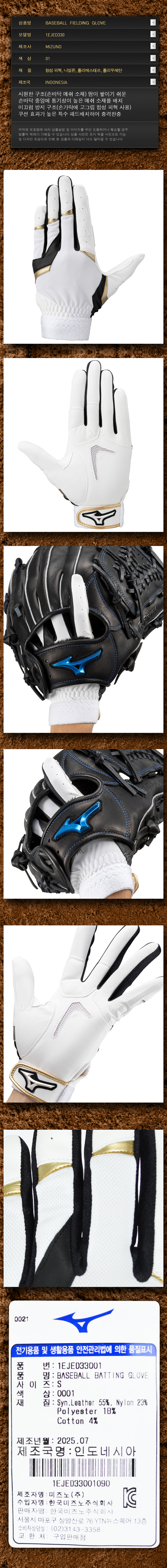 제품명 : MIZUNO수비장갑33001[흰검_우투]