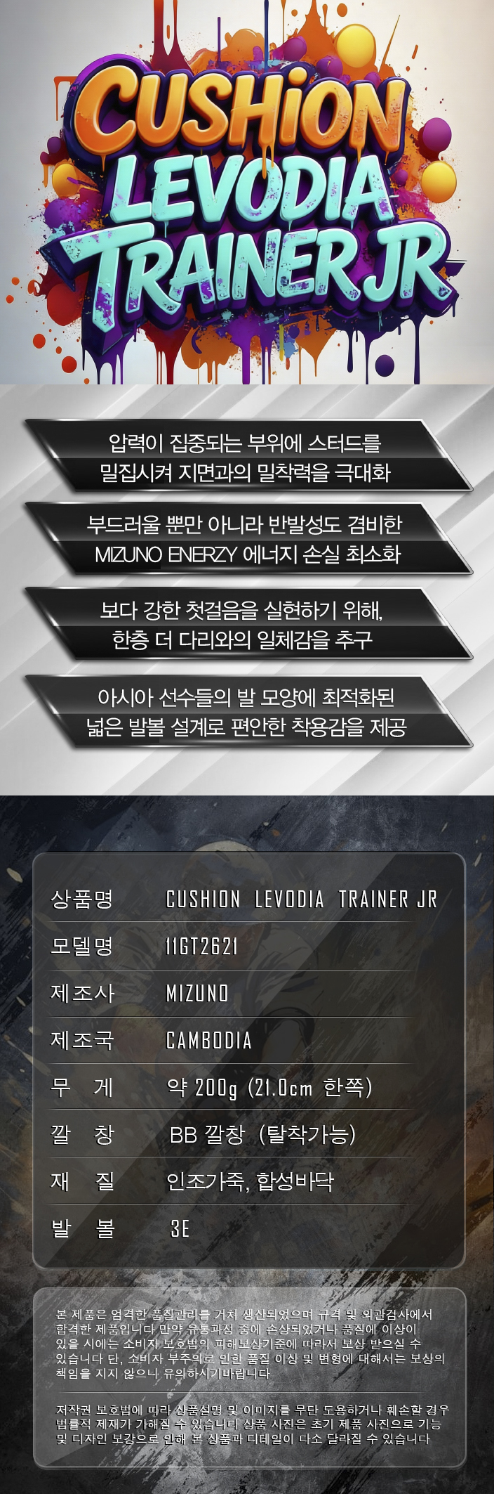 제품명 : MIZUNO유소년인조잔디화262129[곤적]
