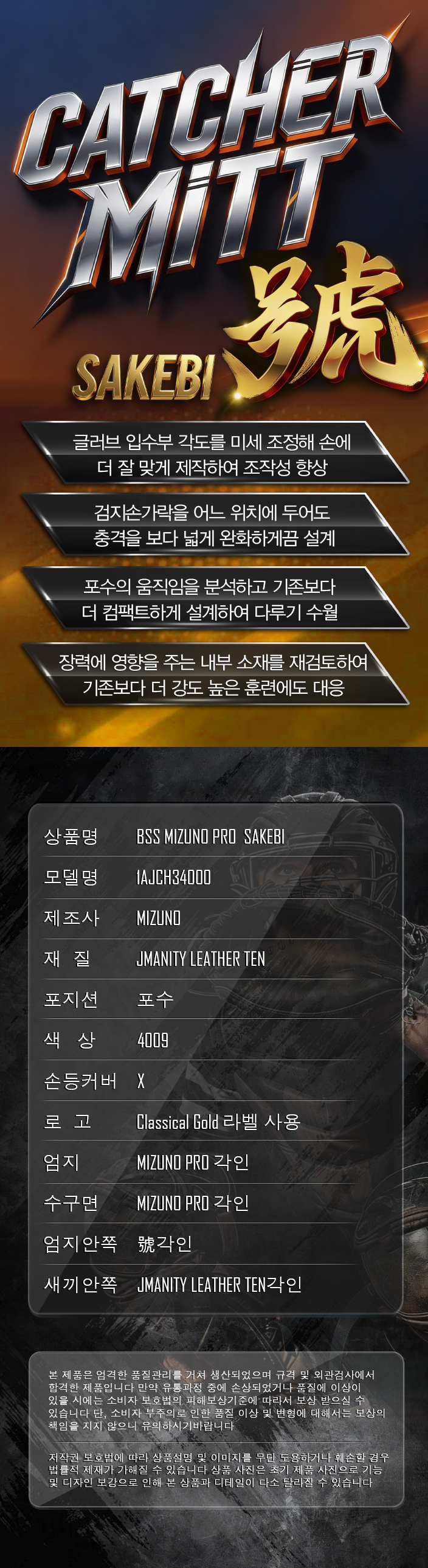 제품명 : MIZUNOBSS포수미트34000[라검_우투]