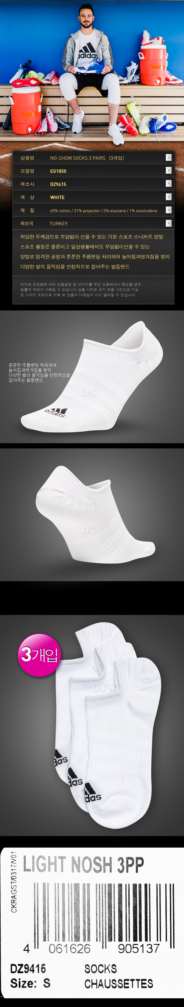 제품명 : ADIDAS스포츠양말DZ941515[흰]